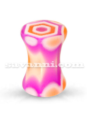 Kirurginteräksinen tunneli lumihiutalemaisilla koristelluilla reunoilla. Tunnelin toinen pää irtoaa kierteillä.