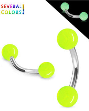 Musta 1.2mm banaani pimeässä loistavilla palloilla. Sopii käytettäväksi mm. kulmakoruna ja rook-lävistyksessä.