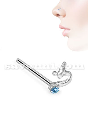Hopeinen korvarengas kulmikkaalla pinnalla.