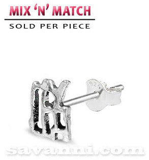Hopeinen korvanappi kiinalaisella menestystä tarkoittavalla merkillä.