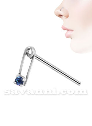 Hopeinen suoravartinen nenäkoru pyramidikoristeella. Nenäkorun takana on hopeinen suora varsi, jonka voi helposti taivuttaa esimerkiksi pinseteillä tai sormin, jotta nenäkoru pysyy hyvin paikoillaan.