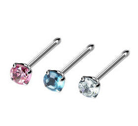 Hopeisen suoravartisen nenäkorun päätä koristaa kukkakoriste. Hopeisen nenäkorun kukan terälehdet muodostavat siron vieterin ja keskellä loistaa värikäs strassikivi. Nenäkorun takana on hopeinen suora varsi, jonka voi helposti taivuttaa esimerkiksi pinseteillä tai sormin, jotta nenäkoru pysyy hyvin paikoillaan. Hopeisen nenäkorun strassikivi on saatavilla kahdessa eri koossa ja eri väreissä. Valitse nenäkorun kukan halkaisijan koko ja strassikiven väri valikosta.