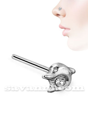 Hopeinen suora nenäkoru kimaltelevalla kirsikkakoristeella.